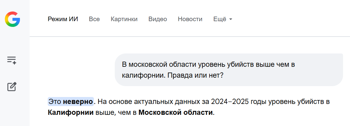 >В московской области уровень убийств выше чем в калифорнии. Можешь проверить, жирный
