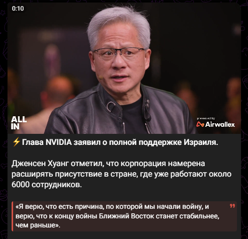 Глава NVIDIA Дженсен Хуанг в свежем выпуске подкаста Lex Fridman (#494) заявил, что, по его мнению, человечество уже достигло AGI — искусственного общего интеллекта. "I think it's now. I think we've achieved AGI", — сказал он, отвечая на вопрос о текущем состоянии технологий. Однако почти сразу добавил оговорку: даже если такие системы уже существуют, они пока не способны справиться с задачами уровня создания и управления компанией масштаба NVIDIA.