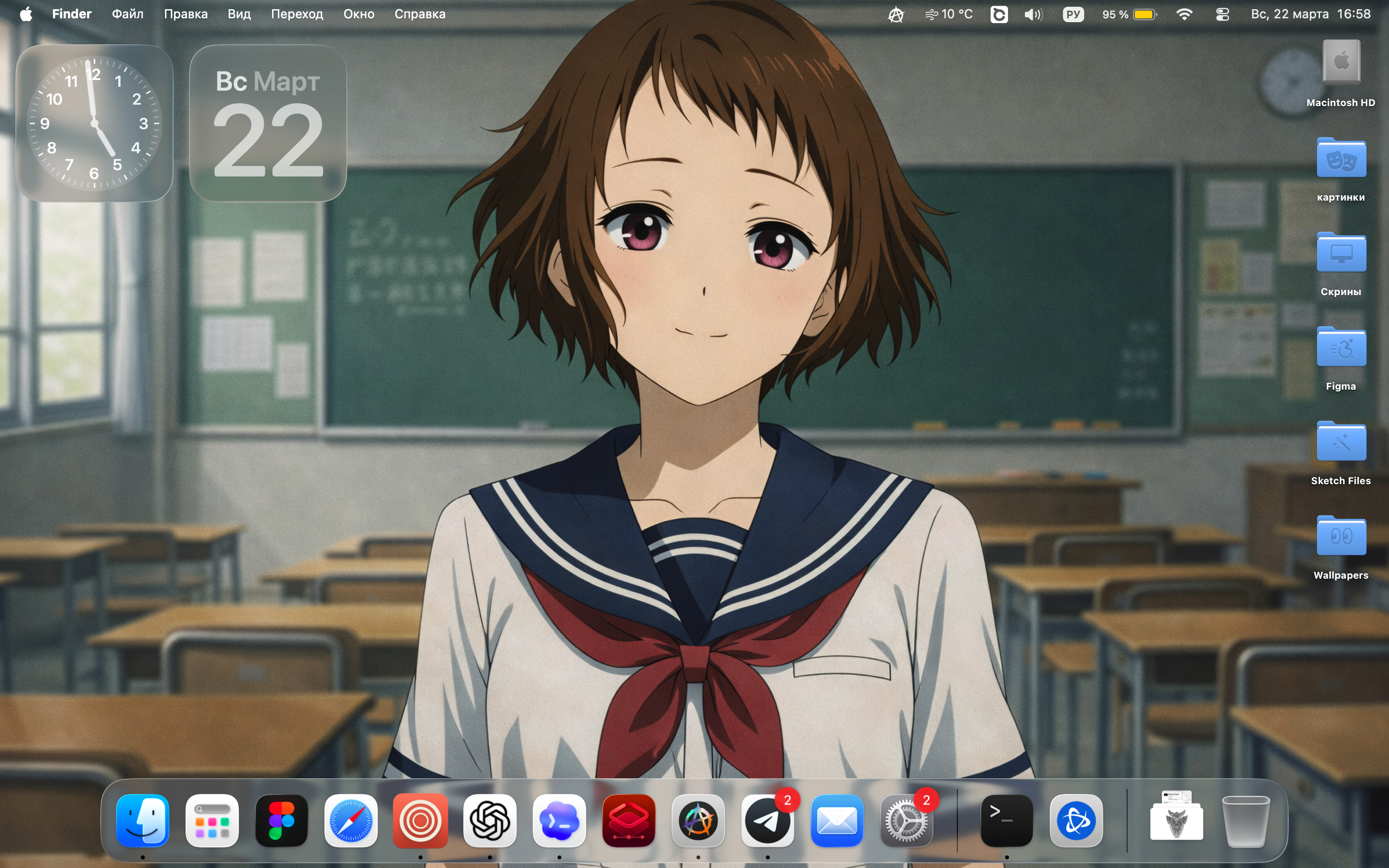 >>331077766 Что конкретно обновить? Критикуешь, предлагай. По твоему рабочему столу сразу можно отметить несоответствие: >Циферблат, день месяца, день недели. >То же самое на панели задач сверху. >Мультичасы. В ирл тоже бы обставил стол часами как шизофреник?