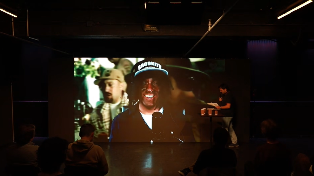 >Один час, тридцать четыре минуты >Горбатый невероятно талантливый карлик что-то бурчит себе под нос на массовку из трёх человек, шутит шутки, никто не смеётся.
