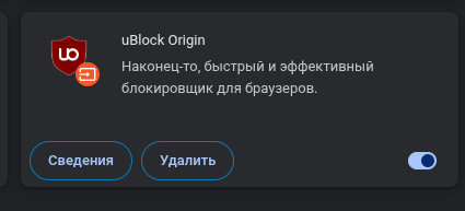 >>331070278 (OP) Хромогам подсластили пилюлю, есть обрез Ublock origin от того же автора. ddkjiahejlhfcafbddmgiahcphecmpfh Лучше чем ничего. По теме: Adguard - мультибраузерный.