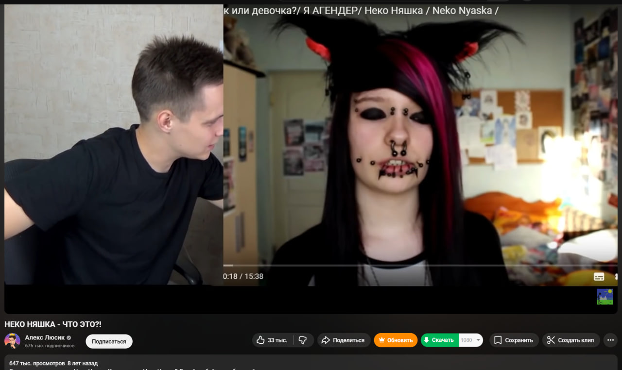 В году 2015-2017 смотрела на ютубе девочкк эмочку, которая говорила в мужском роде, у нее все лицо было в пирсинге, там по базе чайлдфри, нонконформизм и тд, черные волосы на бок, может кто помнит ник? Мало подписчиков было, но видосы залетали иногда. У нее голос был похож на голос караморы, она еще про пирсинг часто рассказывала