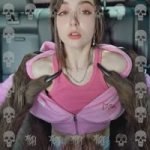 Сохрани лицо. На 5 (пятой) и секунде очень быстро (flash view) задирает вверх футболку (под футболкой нет ничего) до подбородка на 600 мс (милисекунд) и прикрывает ладонями а затем сжимает. Игриво озирается по сторонам.