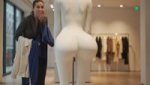 Через окно "Одиссеи" в бездонность космоса она обнажила свою мокрую киску в белых стрингах и показала всю большую попу .