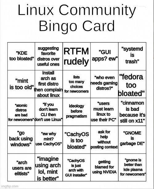 >>3705008 К системд уже были вопросы потому что БЛОАТ, т.е. по определению и философии линукса мы должны это считать зашкваром но с возможностью потерпеть. Сейчас появился намек на зашкварность и нужно превентивно высказать своё фи, чтобы знали что мы тут не это самое. Можно покладывать соломку, подрачивая на артикс, девуан и войд. СЕО поп_ос лучей добра за то что копротивляется.