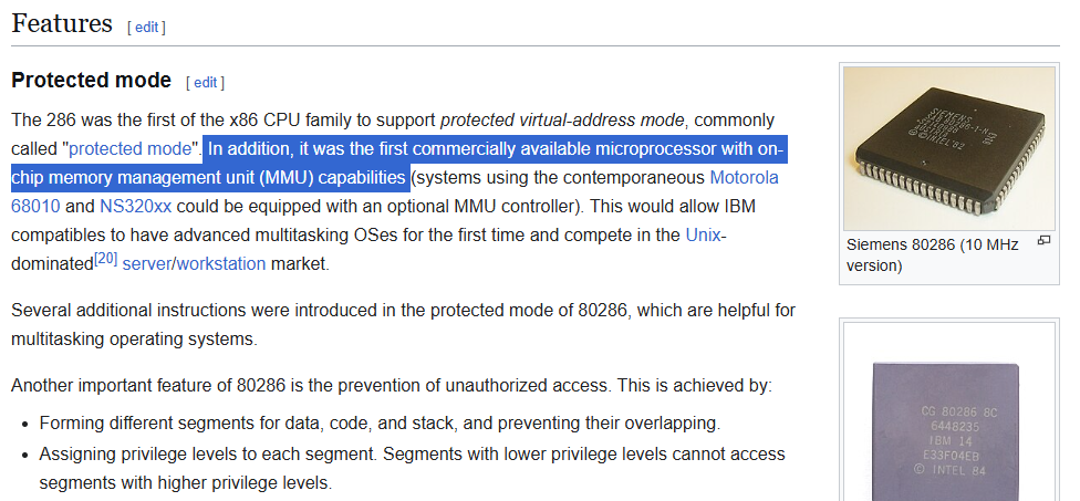 >>3705102 На 286 уже был нормальный MMU, на 2 головы выше всего, что было у конкурентов в это время (у тех это еще и отдельная микруха была)