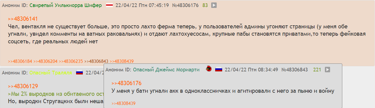 > Это все что нужно знать о блоггинге в вкашечке. В любой момент тамошняя моча может кому угодно отписать подписать мертвые души в миллионных количествах. Раз они не стремаются таких мувов то стоит предположить еще и использование мертвых акков в ботовайпе. Не заходил рандомный Иван в акк по каким то причинам год другой и вот уже Иван бегает рассказывает всем какой попыт молодец и как тольковыигрывает.