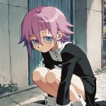 Кому не лень, можете пожалуйста в одежде сгенерировать (пикрил 2), чтобы она была в позе (пикрил 1). Стиль анимешный, если не похуй задний фон тоже анимешный сделать. Спасибо.