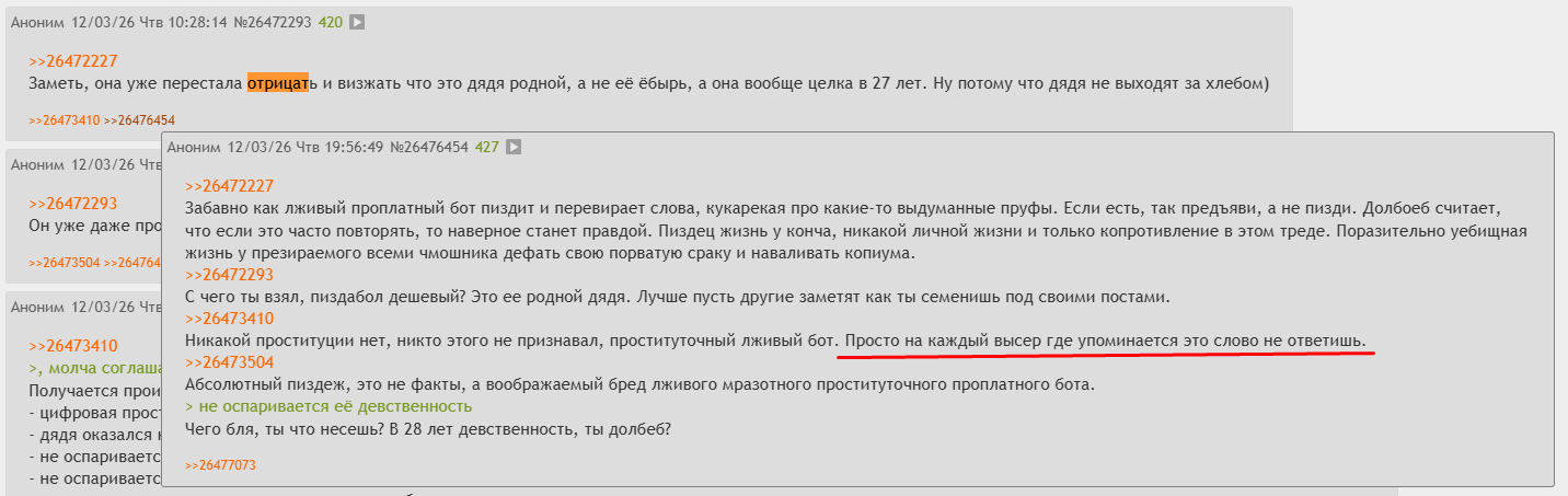 Видел сотни постов, те что были мимо это мимик, я не участвовал в сраче. Я полдня чинил телегу, когда пофиксил и нашел старый трип, уже все исчезло. Не успел весь шизобред прочесть, но странно что теперь называют "хуй", раньше его звали - "сика, лжехаус, вахтёрка, шмоня, делетка" В целом смотря на этот дурдом, думаю кокесу пора лечиться, а то реально уже не здравая тема. Дурка же натуральная.