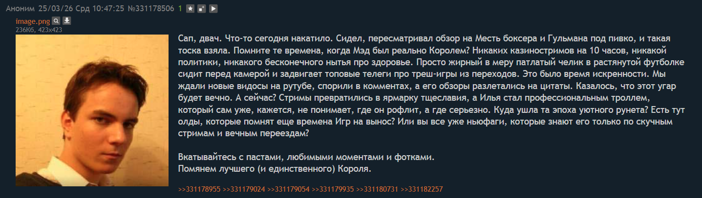 >>26573967 было было помню с другом сидели и ничего не употребляли и заебались роллить эти гифки всратые и я ему говорю а про двач знаешь там вебм тред есть. а у него глаза так смешно забегали, говорит нет не знаю