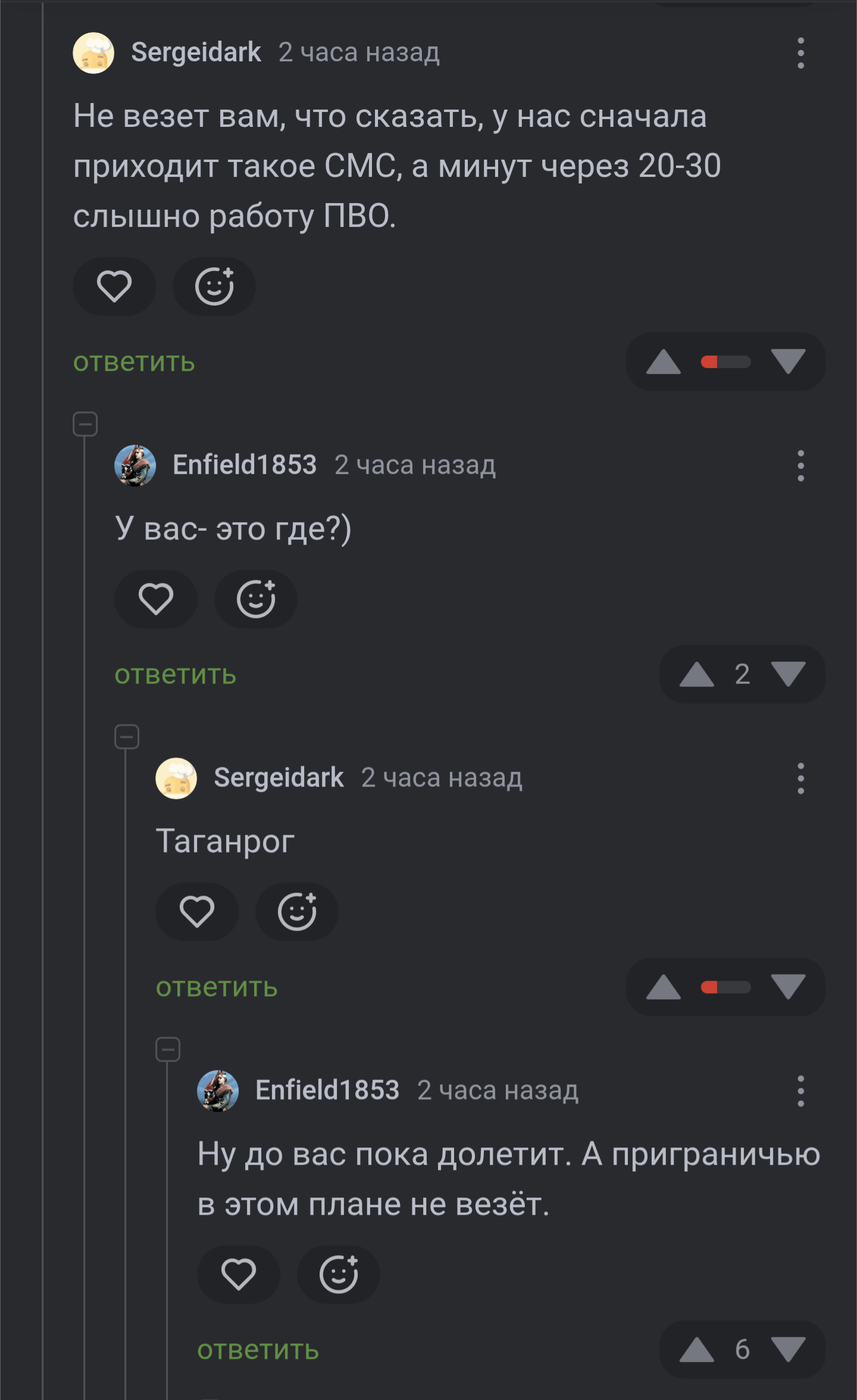 tc похоже или даун по жизни или вбросами занимается, хотя может и то и то. ну да, прям великая пробелма эти оповещения. оповещения штука бесполезная по сути. это когда в прошлом веке летали бомбардировщики, можно было за ранее предупреждать. а в современном мире сначала прилетают ракеты или снаряды и только потом про это узнают. ну вот летят они быстро и запускаются с небольших расстояний, времени обнаружить и предупредить нет, никто никуда не успеет добежать чуть ли не за считаные секунды. с дронами не лучше. ну можно засечь кучу летящих и дальше что? они непонятно куда и неизвестно для чего летят. ну вот засекли пачку дронов или пусть даже летяие снаряды артилерии или ракеты и предупреждают кого-то там. а кого? ну весь район как-то или сразу весь город? очень смешно. и все такие раз и побежали моментально в укрытия, аха. которых в современных городах почти нет и быть не может. ну вот плотность населения приличная, а всякие убежища не строили и в многоэтажных домах негде по сути. за стеночку в коридоре прятаться? ну да, поможет если далеко и то что бы осколками стекла не зацепило. а прилетать может куда угодно, толку от этих всех коридорчиков и подвалов (вообще для многих зданий глупость там прятаться, себе только хуже можно сделать) не особо. с дронами в принципе оповещения никакие не нужны. большинство и так отлично слышно, даже иногда если в помещении находиться. кроме каких-то специфических редких ситаций, никто от них не прячется от слова совсем. ну летает недалеко, дальше что? может разведка, может где неподалёку скоро прилетит. ещё раз - никто от них почти не бегает и ни где не прячется. с телегой вообще бредятина. ну в максе сидите, для оповещений вполне ничем не хуже. да, сам мессенджер в общем унылое дно + есть нюансы в общем, но это на тему оповещений никак не влияет. даже если бы не было макса, ну так вообще-то вариант получше это не мессенджеры, а специализированная система и софт. оповещения о прилётах в мессенджерах это идиотизм полнейший, вот без вариантов. никто не будет на каждое сообщение бегом лезть смотреть, что там за сообщение пришло. в группах по районам и то за день по несколько сот сообщений публикуется. просто бесмысленно и бесполезно какие-то там оповещения делать. а специализированная софтина вполне может начать верещать так, что моментально всё будет понятно. вообще для мобильных сетей что-то там уже давно существует для всяких оповещений, просто это никому не нужно, по крайней мере пока что. в варинате специализированной системы банально рассылаются данные, в которых и географически примерно указывается в каких границах есть потенциально заинтересованные получатели. софтина по координатам (от спутника + со спутника иногда координаты подмениваются и должен быть режим ручного указания местоположения + может кто захочет мониторить ещё какие локации) софтина определяет, нужно ли сообщение отфильтровать или нет. даже простенькую програмулину для подобного (вообще функционал может быть сильно поболее и сильно более востребованный) под ведроид написать не сложно и не долго. в чём пробелма, в городе или вообще в стране нет ни одного программиста? уууууууу. ныть про то, что некогда этим заниматься или что сервера с тырнетиком денях стоит, не нужно. это не аргумент от слова совсем. в новостных группах элементарно откручива