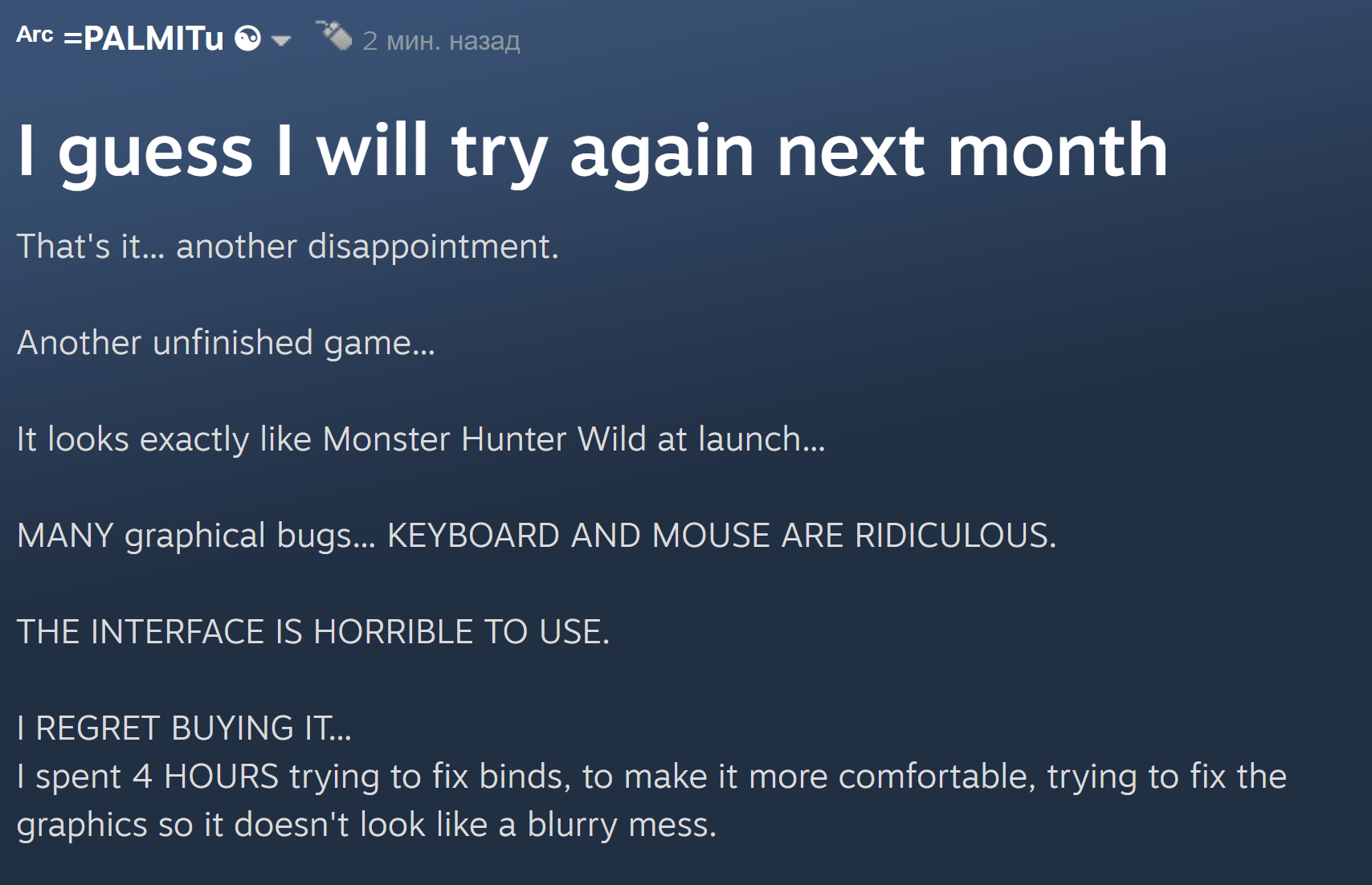 Так что там по игре? Не стал конечно предзказывать, потому что предзаказы для пидоров. Но посмотрел стримы, почитал отзывы. Буквально все притензии к игре, это то, что нужно нажимать больше трёх кнопок и это сложно. И то, что на 960 игра не вывозит в 4к с ртх.