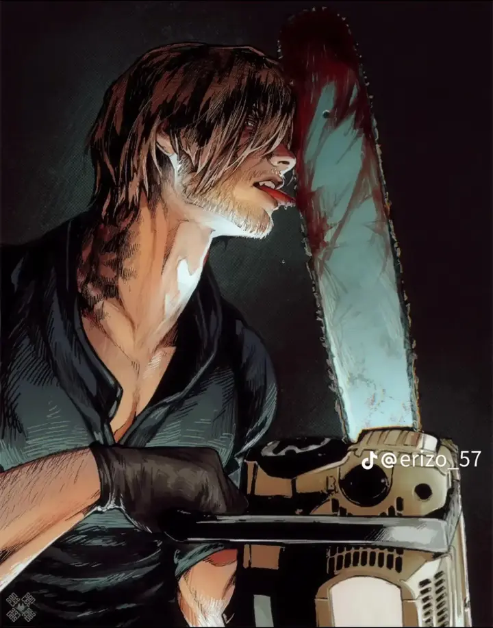 Короче, аноны, залипал на просторах интернета и наткнулся на этот лютый арт с Леоном Кеннеди, который облизывает бензопилу. Стиль просто отвал башки — мрачный, брутальный, Chainsaw-хоррор. Решил попробовать повторить это безумие, используя свои фотки и нейронку для стилизации. Генерировал долго, подбирал промпты, чтобы черты лица сохранить, но оставить этот безумный Chainsaw-вайб. Вот что в итоге вышло. По-моему, получилось передать ту самую атмосферу. Что скажете? Оцените уровень проработки.