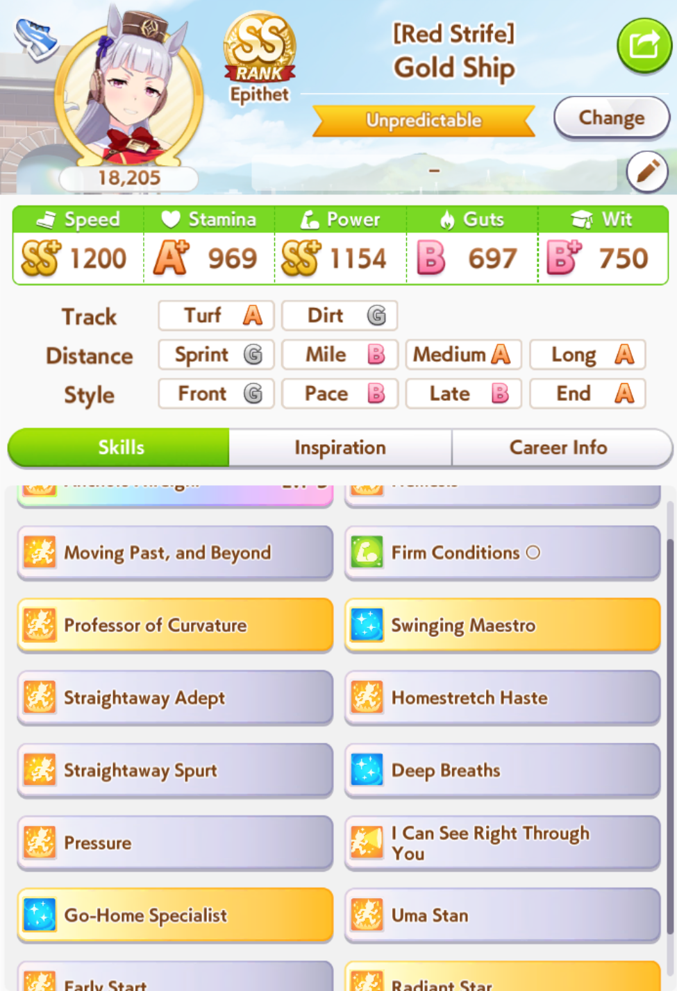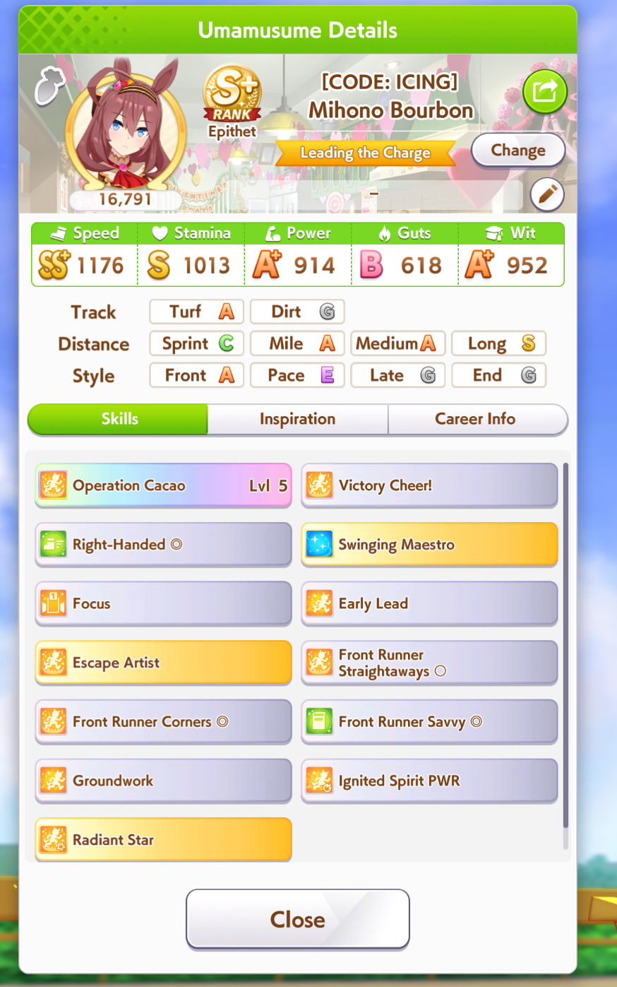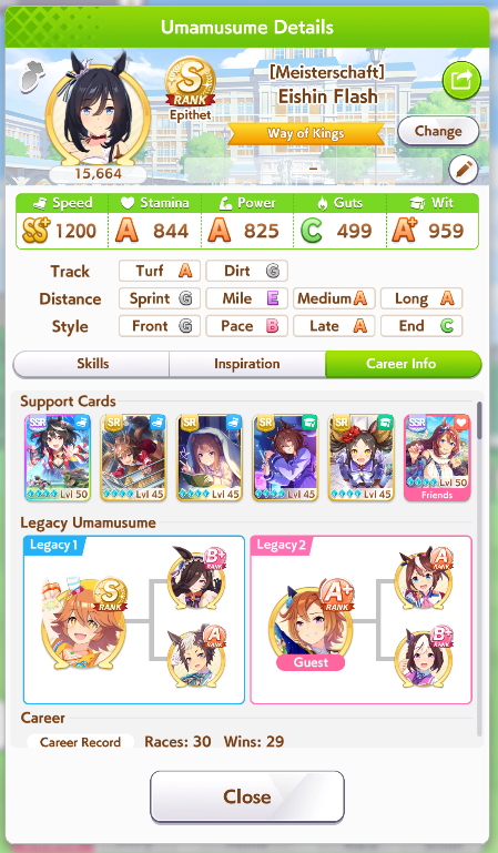 >>6654642 С G ранга можно довезти до S, просто нужно всего ничего, чтобы розовая спарка прокнула 3 раза за карьеру. Ну тоесть в одном эвенте с наследованием у тебя должно прокнуть минимум 2. Каждая спарка модет наследоваться 1 раз не считая того что дают на старте. У тебя есть меню Sparks в карьерном режиме, там можешь посмотреть какие спарки прокнули а какие нет.