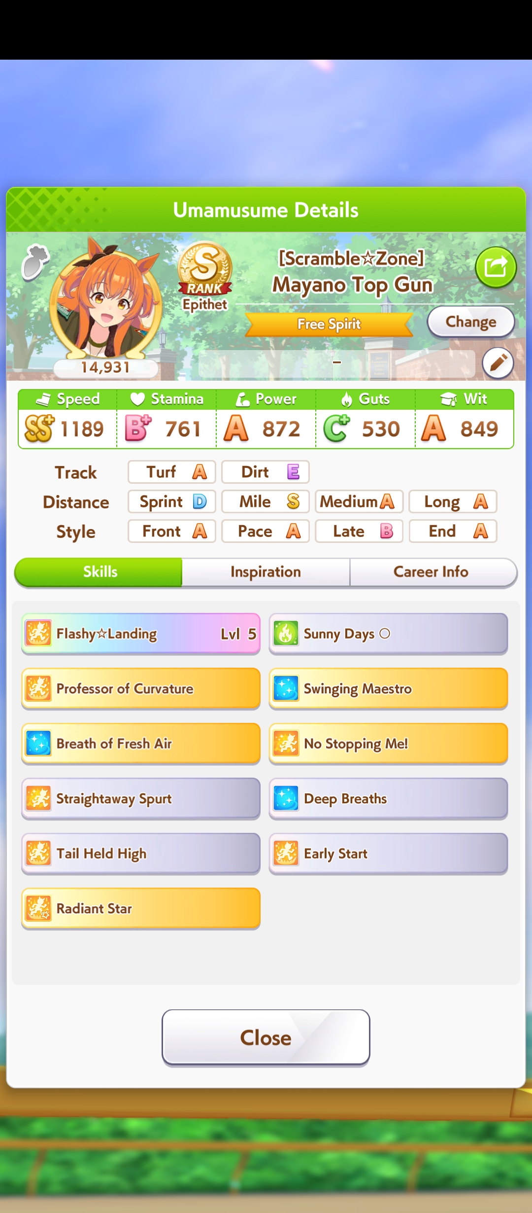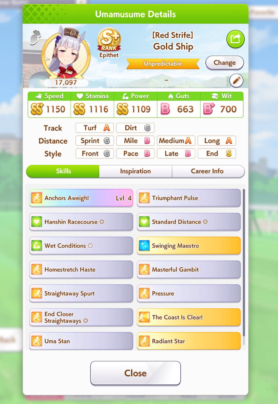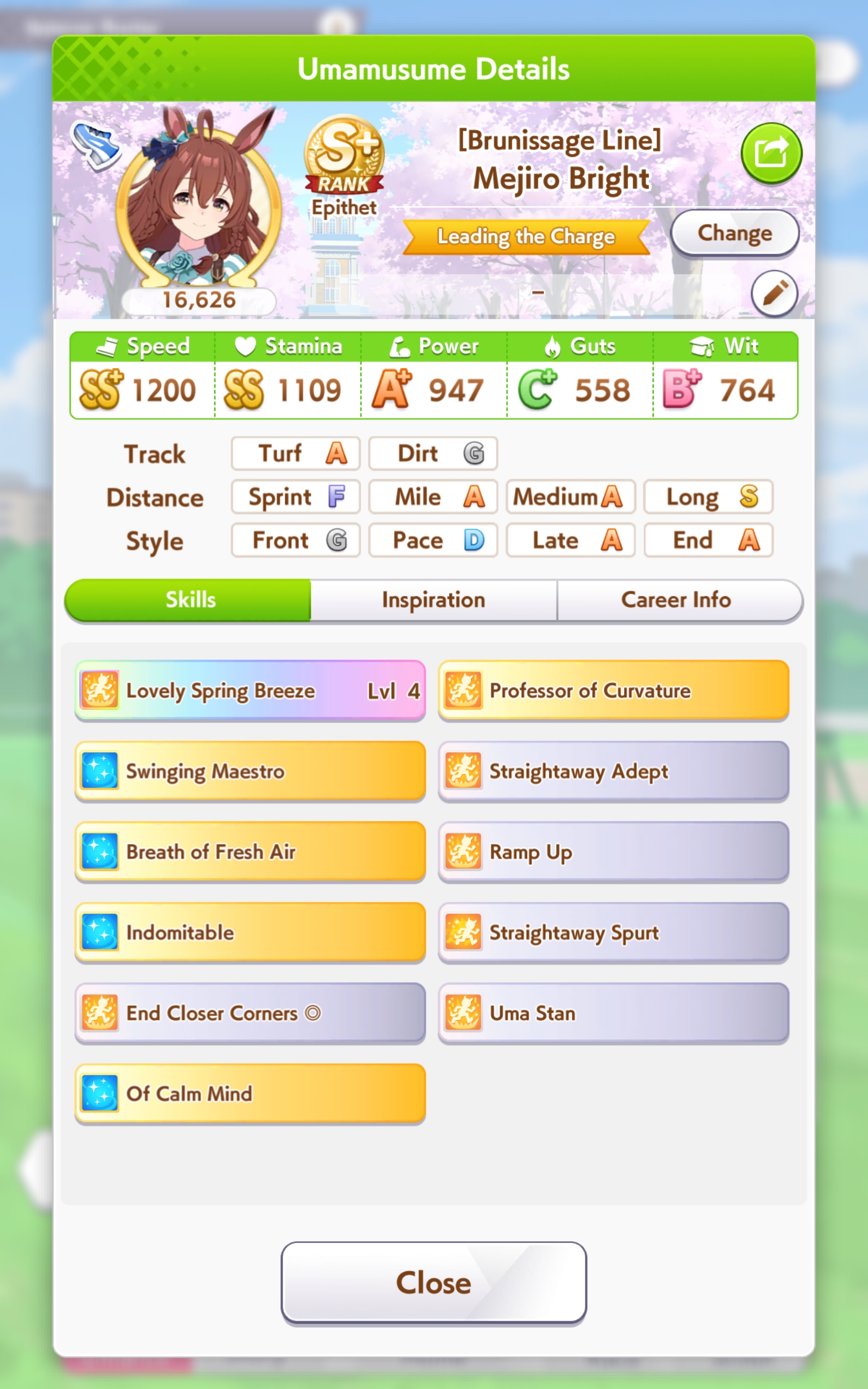 >>6654642 С G ранга можно довезти до S, просто нужно всего ничего, чтобы розовая спарка прокнула 3 раза за карьеру. Ну тоесть в одном эвенте с наследованием у тебя должно прокнуть минимум 2. Каждая спарка модет наследоваться 1 раз не считая того что дают на старте. У тебя есть меню Sparks в карьерном режиме, там можешь посмотреть какие спарки прокнули а какие нет.