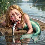 >>331306212 (OP) Реквестирую русалку, пойманную на удочку. Типа русалка лежит на берегу, и лишь только кончик её хвоста находится в воде. Из её рта торчит хвост мелкой рыбы (ловили на живца) и тоненькая проволочка длиной сантиметров 30, к которой далее привязана леска. Во рту русалки острые как бритва зубы. Из щеки русалки торчит кончик большого крючка, а вокруг раны видна кровь. Выражение лица у русалки очень грустное, а из её глаз текут слёзы.