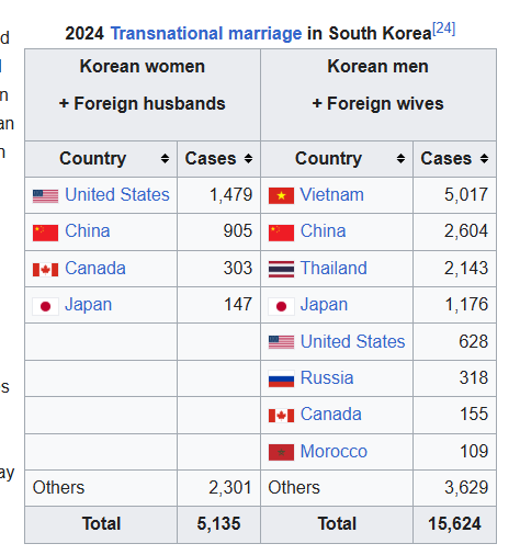 >>331337019 в Южной Корее коэффициент рождаемости около 0,72–0,75, в Японии — около 1,2–1,26 трудно объективно оценить количество браков не имея доступ к государственной статистике но рождаемость самый главный показатель что в этих странах что-то не так во взаимоотношении полов. К слову в Китае тоже рождаемость падает.