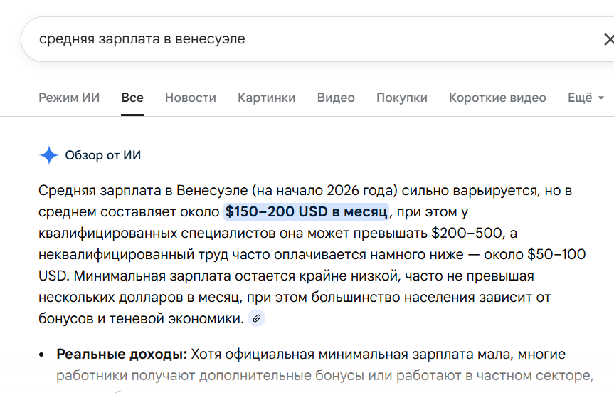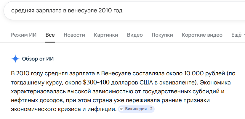 >>331379144 >>331379381 Неа. На пике гиперинфляции и экономического кризиса (примерно 2018–2020 гг.) минимальная зарплата в Венесуэле опускалась до уровня менее 2–3 долларов США в месяц. Из-за катастрофического обесценивания боливара и санкций, доходы населения были одними из самых низких в мире.