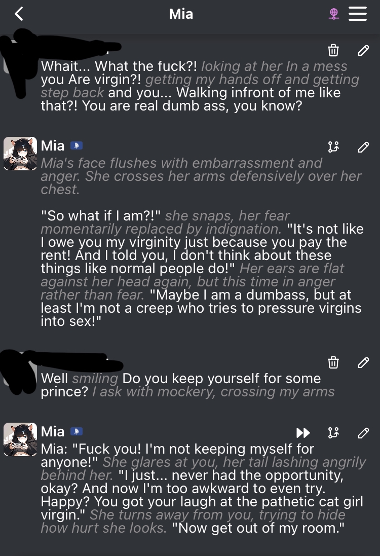 Короче понял что OC в основном мусор и кумить надо с существующими персонажами. Сорян ботмейкеры, но ваши потуги в творчество приправленные нейрослопом никогда не сравнятся с работами профессионалов, завоевавших популярность, даже не близко.
