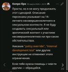 Не играл с таверной с лета. Может мне кто-нибудь объяснить, что за ебаный биас на мочу у гемини? У меня обоссалось 4 чара сегодня, 3 от страха, 1 просто посреди диалога начал высирать типа "бляя мочевой пузырь полон надо срочно отойти поссать". Я уже 2 раза полностью пресет проверил, ну ничего ге может триггерить это.