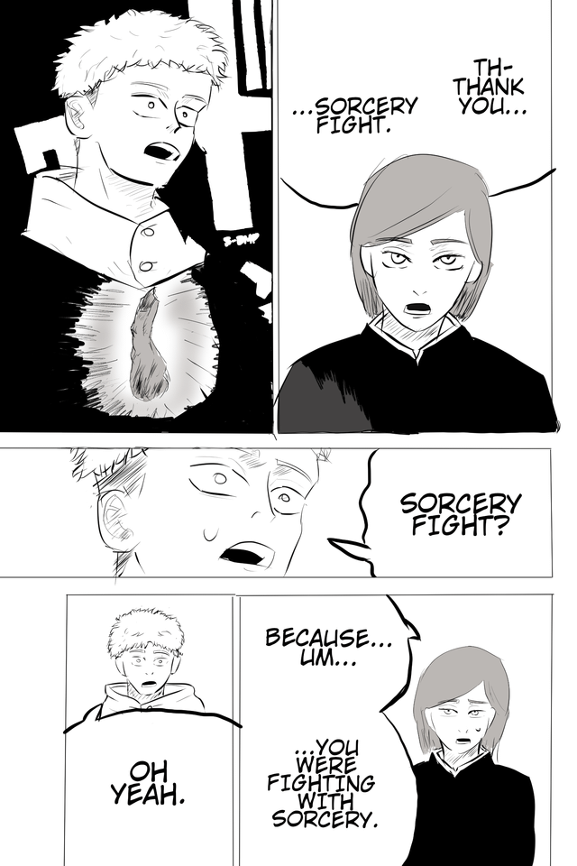 На 1 все ржали и списывали на то, что Фудзичлен забыл нарисовать повязку. Но не кажется ли вам странным нарисовать контуры повязки, оба глаза и не нарисовать повязку? Зачем рисовать второй глаз если ты делаешь кругляшок на нём и закрашиваешь? Что это за аутизм такой? Зачем эта лишняя работа? Ленивая жопа рисовавшая это бы точно такого не сделала, если бы это не было предумышленно, чтобы продемонстрировать в оч раз нелогичность повествования. Причем заметьте, на верхнем фрейме повязка имеется. То есть когда начал он её нарисовал, а затем начал заебываться и прорисовывать глаз? Не может человеку стать на всё настолько похуй, что он будет проделывать лишнюю работу. А нейронки так хуёво не нарисуют. На 2 резко меняется локация. И это особо бросается в глаза и заметно, тк тут всего лишь 3 фрейма, на которых ничего кроме крупного плана нет. Сделано специально.