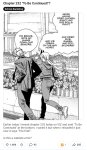 Из проблем: сеттинг, рисовка, сюжет, дизайны "обычных" персонажей. По этим параметрам манга прямо кал. Рисовка плохая, во второй части особенно, даже по современным меркам где популярно всякое караульное говно типа титосов. Дизайны: даже прочитав все залпом, я постоянно путал этих одинаковых мужиков и баб в костюмах, хотя обычно у меня вообще нет проблемы с тем чтобы различать персонажей, тут же натурально уровень проходной корейщины. Сдержанные дизайны "просто мужиков" работают в манге с хорошей рисовкой, к примеру в саге о винланде. Про сюжет говорить нечего, потому полурандомного бреда для вау-моментов и сон собаки под конец.