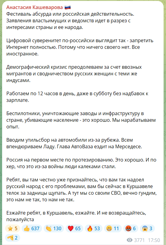 >>62270275 (OP) Кашеварова продолжает наваливать кринжа базы: