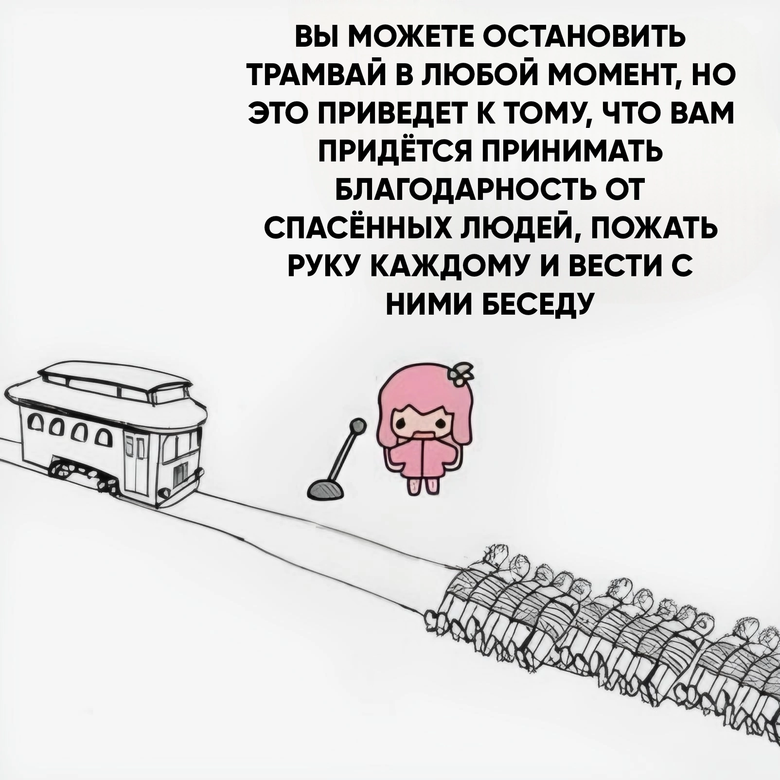 >>331424377 Только том случае если трамваю непременно нужно попасть в пункт Б, а рельсы сложены только из человечких жизней. Если трамвай просто едет на похуй, то никакх напрасно тут не будет.
