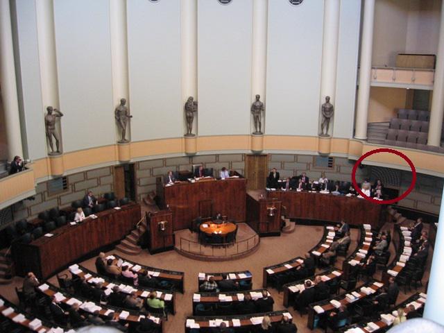 С депутатом каким-нибудь. Учитывая её промежность, ранг депутата не меньше депутата Госдумы.