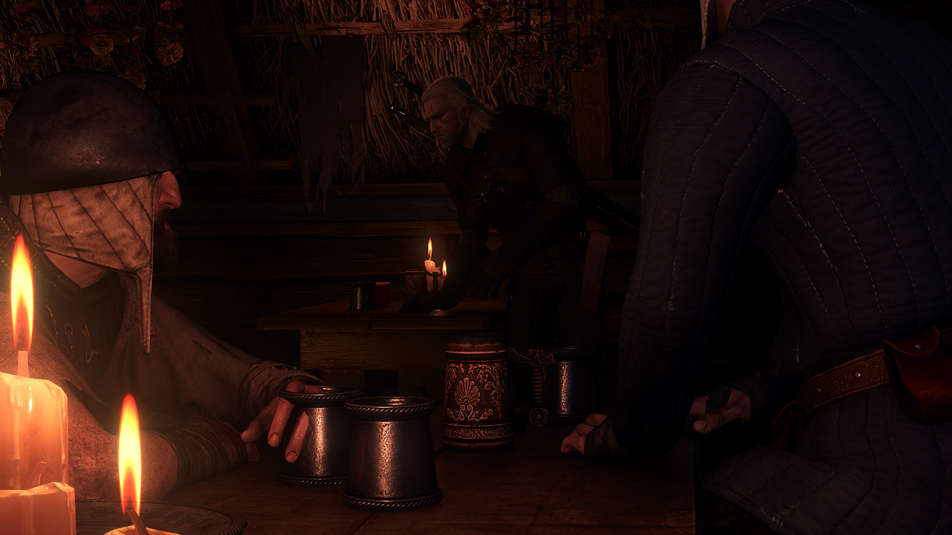 Зашли как-то 2 хантера в бар. Пошли они за чекушкой на дорогу, да только местные работяги бачонок первее опустошили. Спрашивает Похотливец: Это кто еще таки? Патриоты, отвечает старец Весемир. Встал тогда Хервант, расчехлил свой кожаный клинок, да только старец мудрый, старец увидел все это и видел как работяги драки доброй искали. Попытался старец ксивой светануть, говорит мол: Не надо, братцы. Видите? А ну отошли отсюда. Да только плевать было оболдуям, ибо синька уже белочку породила и пошел мордобой, и полилось вино, и я там был, и пиво пил. По усам все потекло, а в рот не попало, сцуки. Но поднялся в вой деревне, суету навели и ведьму местную призвали, Йенефер из Трахтенберга, ту самую что ватгерн весь пролог искал.
