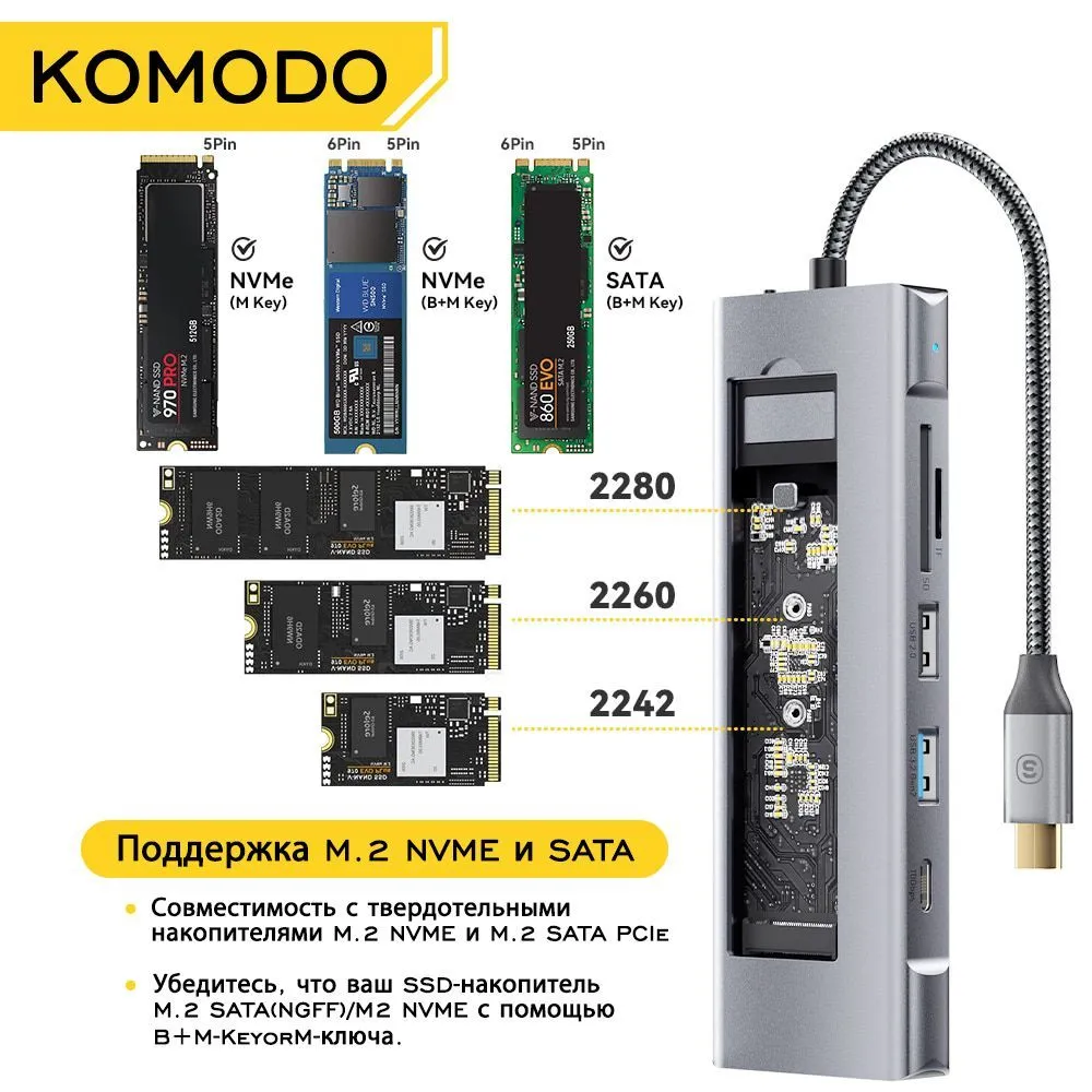 >>331471811 (OP) Как человек с ноутом на type-c советую хаб типа как на пике. Чтобы все в одном и ССД там же. Конкретно в этом заявлена универсальность nvme/sata. Ну и вообще лучше не гадать что там у тебя, а универсальный корпус взять, в будущем тебе под nvme точно пригодится когда все sata помрут.