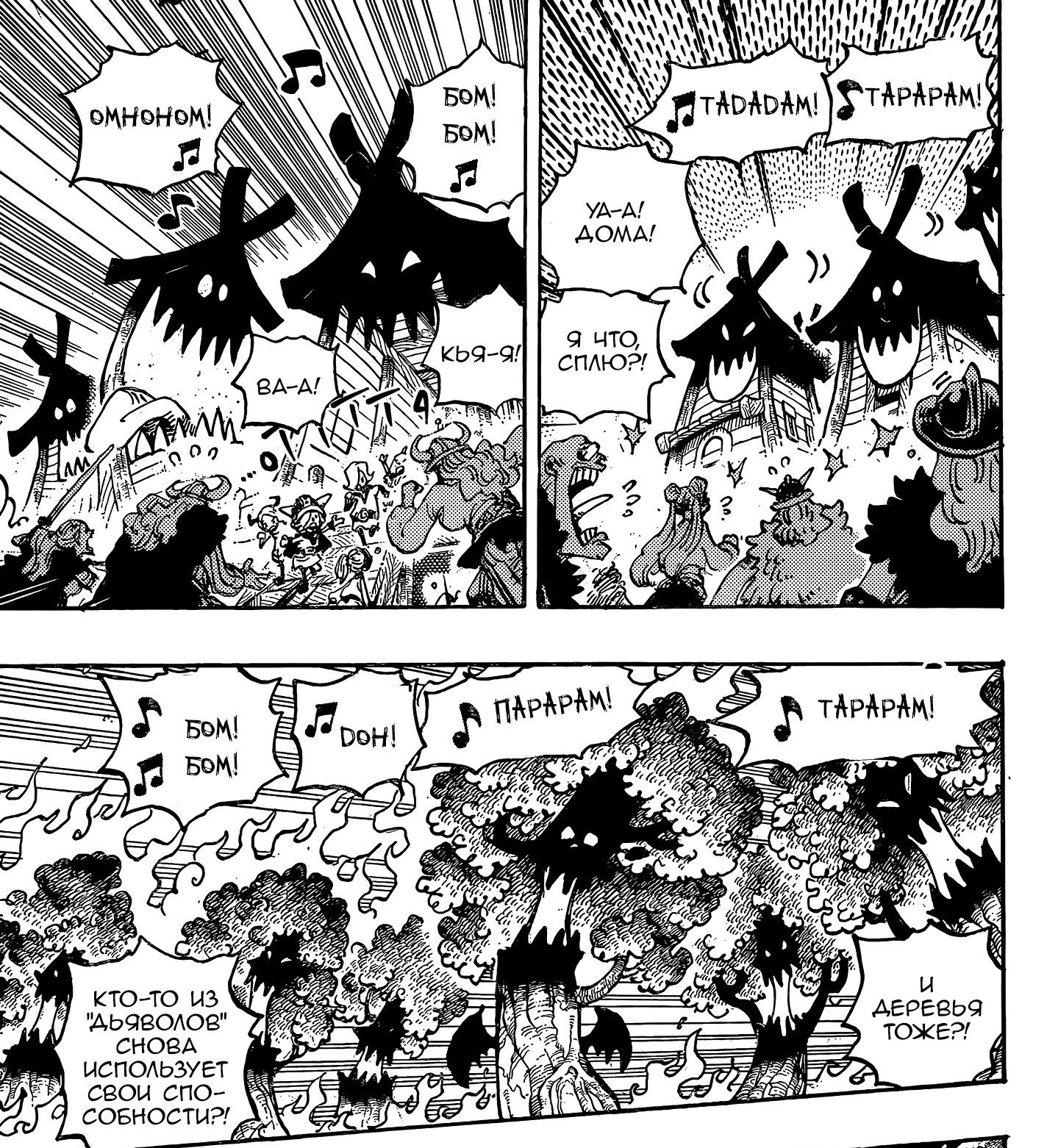 То что хижины и лес шизово запели когда Имба заспавнился, может говорить что у него ВСЕ способности фруктов (он клонировал способность Мамки). Или Ода обленился и это другой фрукт.