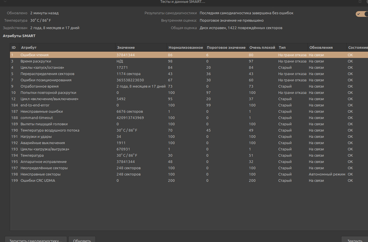 Решил тут диск чекнуть. Че заебись или хуева? Мне пизда? (или ему)