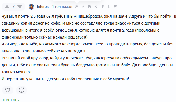 Ребят так и нн увидел советов, где заводить знакомства. 5 лет в новом городе и нету ни тян отсюда ни друзей, только коллеги. Поэтому повторю вопрос :Всем добрый вечер. Где можно познакомиться с тян ? За всю жизнь было 2 отношений и 3 тян. Какие есть места и варианты знакомств ?В этом году есть планы перестать быть инцелом и побороть прошивку инцельскую Мимо 36 летний богач с квартирой и машиной