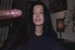 The video starts with a woman. The video then jumpcuts to the same woman being smacked in her face by a man's penis. The woman is using her hand to hold his large white penis and repeatedly smack it against her tongue. The camera remains static throughout the entire clip in a low angle shot with the man lying down infront of her. She looks directly at the camera as she smacks. The woman is lying down. her feet are seen bent behind her. ╔══════════════════════════════════ ✦ BLACK ✦ ╚══════════════════════════════════