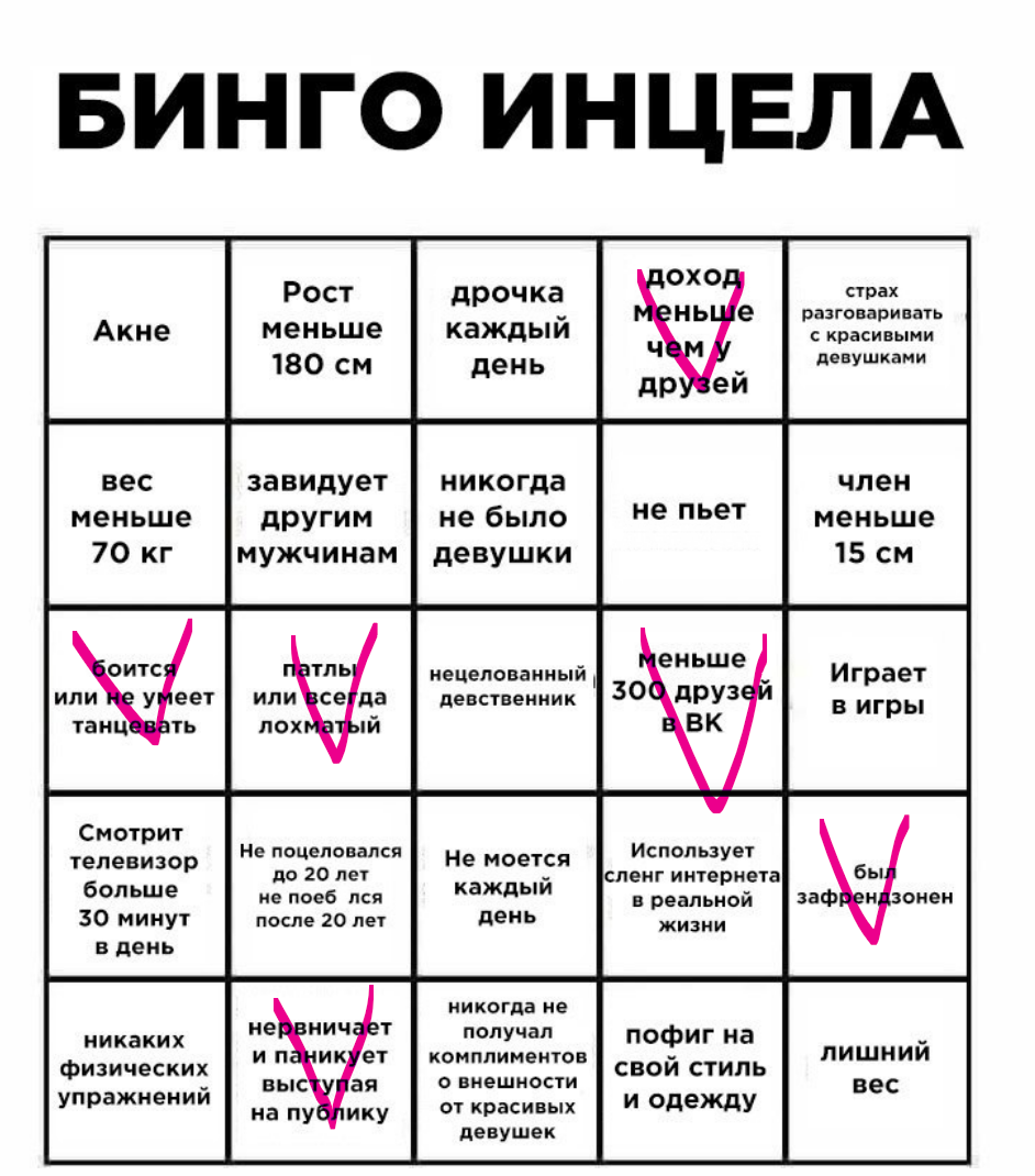 >>331564403 "Инце́лы (англ. incels, словослияние от англ. involuntary celibates — «невольно воздерживающиеся (от секса)») — люди, неспособные найти сексуального партнёра, несмотря на желание это сделать" Чел, ты.... То что я ебалСЯ не значит что сейчас ебуСЬ.