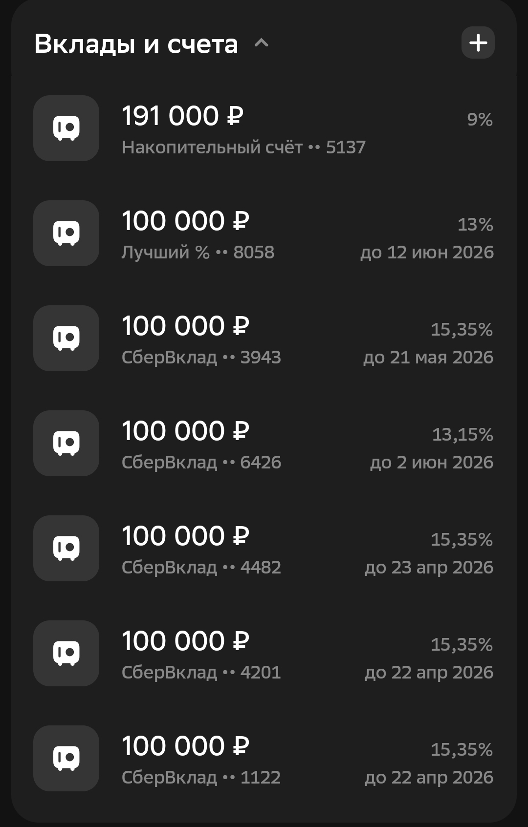 В сбере там и общие траты и подписка сберпрайм и еще процент за владение их акциями на брокерском накидывают проценты к вкладу/накопу. Правда в итоге даже максимальный процент хуйня полная, выгоднее ОФЗ купить.