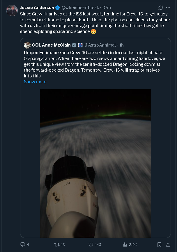 Думол с Crew-11 перекатить, а потом подумал, что Crew-11 - это уже рутина и такими оп-пиками тред будет унылым...