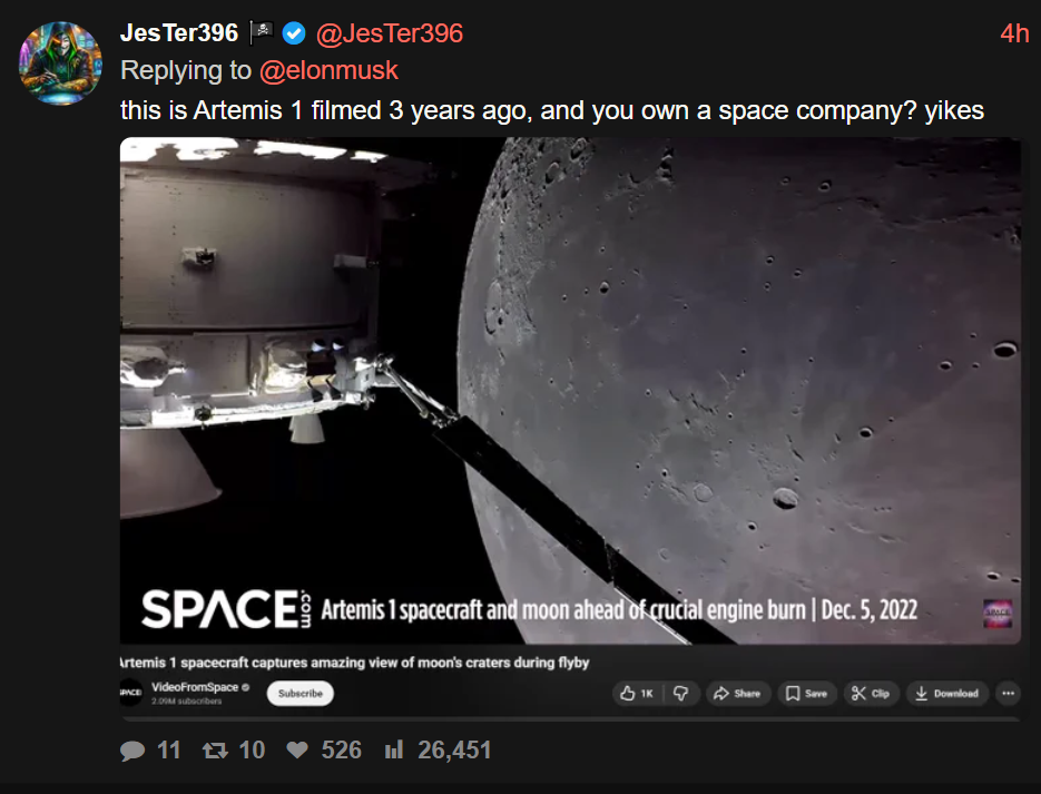 Не, ну реально в 2к26 самый минимум бесполезной хайпожорской лунной миссии должен был быть стримить всё это говно 24/7 на твич. А так сидят какие-то люди на каком-то дваче, задают друг другу вопросы типа "а чо там? а они ещё летят?", никто нихуя не знает, не, ну реально с таким же успехом можно было просто сказать "чатжпт сделай мне фото приземления" и всё. Не удивлюсь, если так они и сделали. Благо фото запуска за последние 50 лет нарисовали сколько угодно.