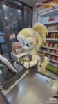 Пони: Опять пришел? Каждый день приходишь за водой в одно и то же время... Специально, чтобы на меня посмотреть? (за окном лает собака, воздух густеет) Парень: Просто по пути. (Пони достает леденец, поправляет волосы) Пони: По пути, говоришь? Хочешь леденец? Скажи «мама», и я отдам его тебе. Возможно. Парень: Мама. (Пони краснеет) Пони: М-Мама?! Ты и правда это сказал "мама"? ... Н-ну... тогда на, держи. (Парень забирает леденец) Ты реально его взял... (она поправила очки которых нет. Из-за стенки донесся пердеж соседа, завоняло озоном) Пони: Взял леденец? Скажи «мама» еще разок или... каков твой следующий шаг? Парень: Мама.