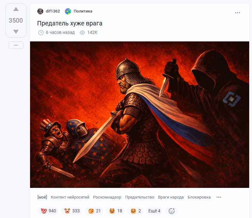 >>62331267 (OP) ВЛАДИМИР ВЛАДИМИРОВИЧ, В ИНТЕРНЕТЕ ПОЛНО ХОХЛОВ И ЭКСТРЕМИСТОВ ИЗ АБВГ И ПРОЧЕГО ДЕСТРУКТИВА, НАМ НУЖНА ЦЕНЗУРА НЕ ТОЛЬКО В СМИ, НО И В ИНТЕРНЕТЕ, ИНАЧЕ НАМ ВСЕМ ПОЛ ПОМЕНЯЮТ! @ АЧО ВСМЫСЛЕ, КАКАЯ БЛОКИРОВКА ВАТСАПА И ТЕЛЕГИ, ВЫ ЧО, ПРЕДАТЕЛИ!!!111 Необучаемая порода. Напомню: до блокировки тг эти же предателями и врагами либерах называли.