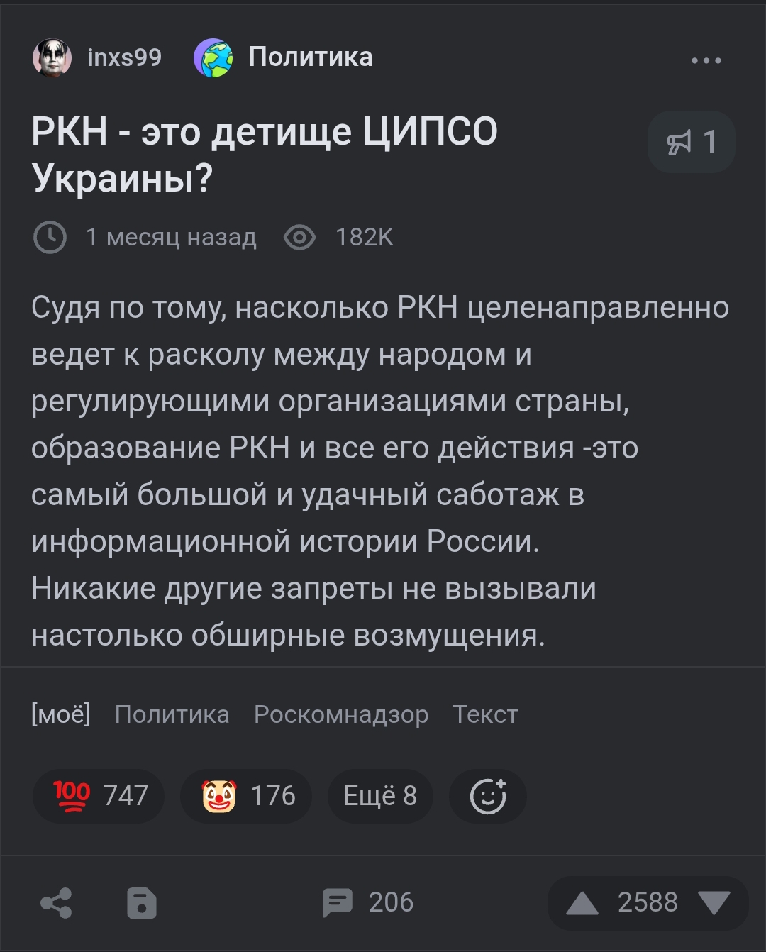 Есть какое-то изысканное, извращённое удовольствие у архитекторов мира - сначала учили долго россиян ругаться на РКН (не Путина), а потом резко дёрнули кран и сказали - всё, за оскорбления РКН получите.