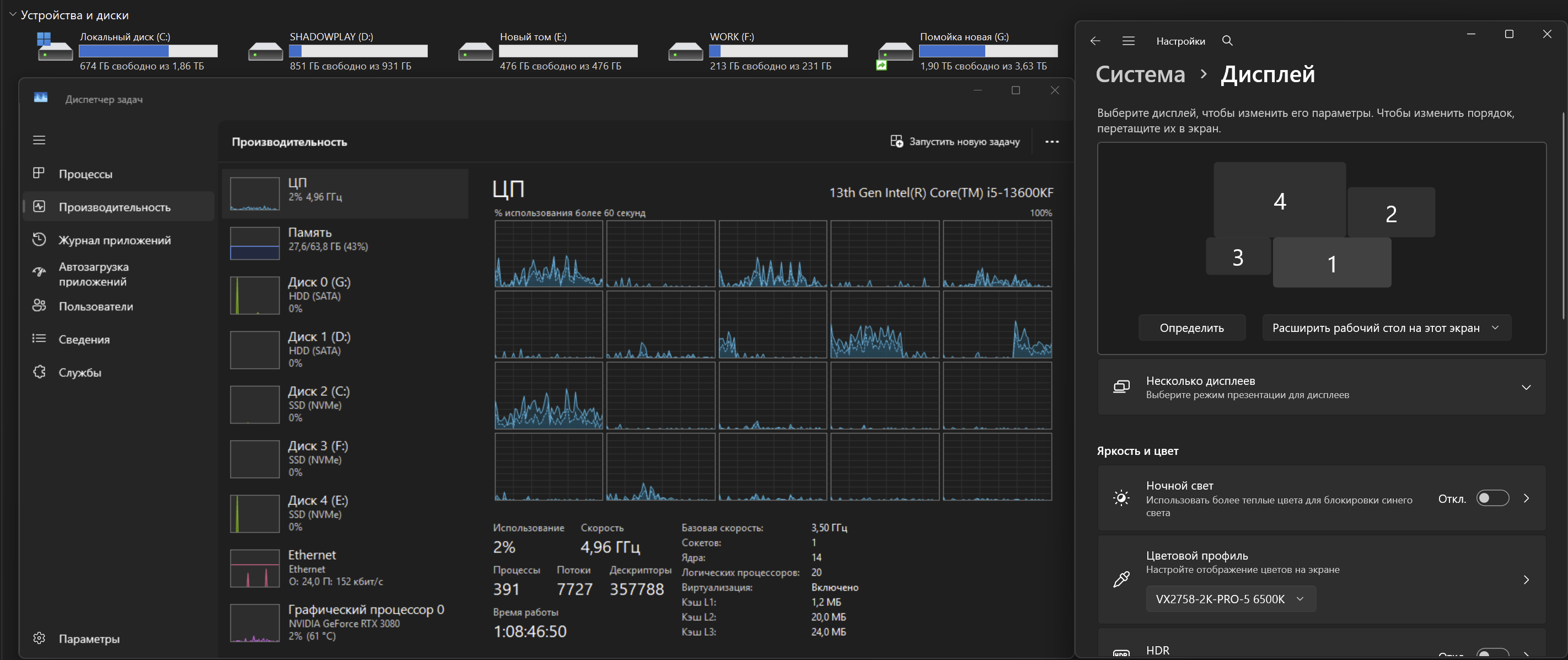 9800х3д, 5070ти, 64гб ддр5, 2к монитор и 4к олед телевизор.