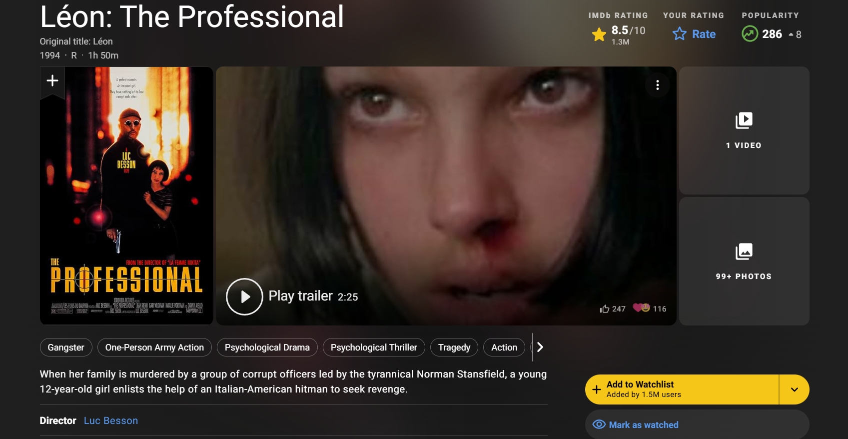 А второй пикрил это драма повествующая о нелегкой судьбе киллера, который живет один, перебираясь с места на место, его наебывает работадатель, платя ему гроши за работу - а он в итоге находит смысл жизни в защите лоли, которая сама попсиопала к нему, после того как продажные менты перебили ее семью.