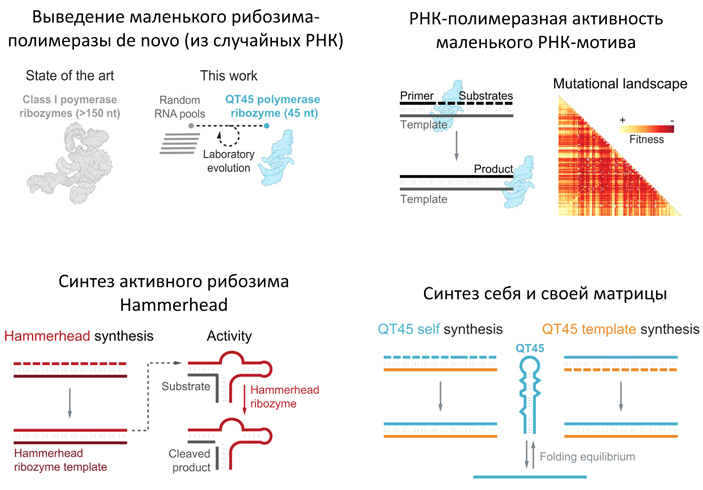 Учёные в говне мочёные синтезировали молекулу рнк которая которая: может копировать другую рнк может копировать сама себя была синтезирована с нуля, а не упрощением какого то говняка. была синтезирована методами которые возможны на древней земле состоит всего из 45 нуклеотидов, прошлая самая короткая была из 150нуклеотидов смотри пик 3 в ней есть что улучшить случайными заменами