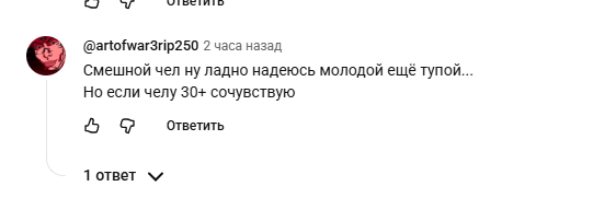 Сабж умудрился за рекордно короткое время прокатиться по всему подвалу рунета, одновременно обсуждая и красных, и правых, и в процессе случайно добился самовыпила собственных каналов на Ютубчике. Причина классическая — фута-контент, за что его в итоге аккуратно вынесли с ру-ютуба, но это не точно. Дальше всё по учебнику, как полагается каждой микро-селебе из околополитического болота, завёл личный шизо-чатик в телеге. Там он круглосуточно заливает поток сознания — от нытья про тян (с акцентом на вечную драму с бывшей Данилинга) до тяжёлой геополитической шизы про будущее России. В довесок приплетает андеграундные кружки уровня Светова, Юнемана и прочих Жожеков, чтобы выглядело солидно. Преподносит себя так, будто у него аудитория на пару сотен тысяч и его мнение весит хотя бы что-то (спойлер: нет). Но, внезапно, вызывает неподдельный интерес публики, будто у него есть какой-то тёмный лор и политическая тусовка Ютуба реально в курсе, кто он такой, просто молчит.