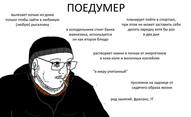 >>331742778 (OP) Жрать люблю, жирный, не РАБотаю(пенсия по шизе и профессия пожизненного шейного наездника для бабки одновременно), гулять хожу только ночью(да и то только летом, зимой дома сижу безвылазно). Но майонез ненавижу - мне с ним не вкусно, сметанка намного лучше.