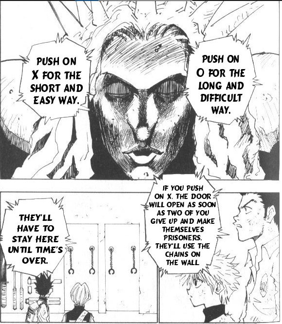 Togashi decides to make many characters appear in Black Whale arc since he’d like to know what will happen in a chaotic situation. He refers to Oda, who also introduced many characters in one arc (implying Marineford Arc). - Togashi-Kishimoto 2016 interview