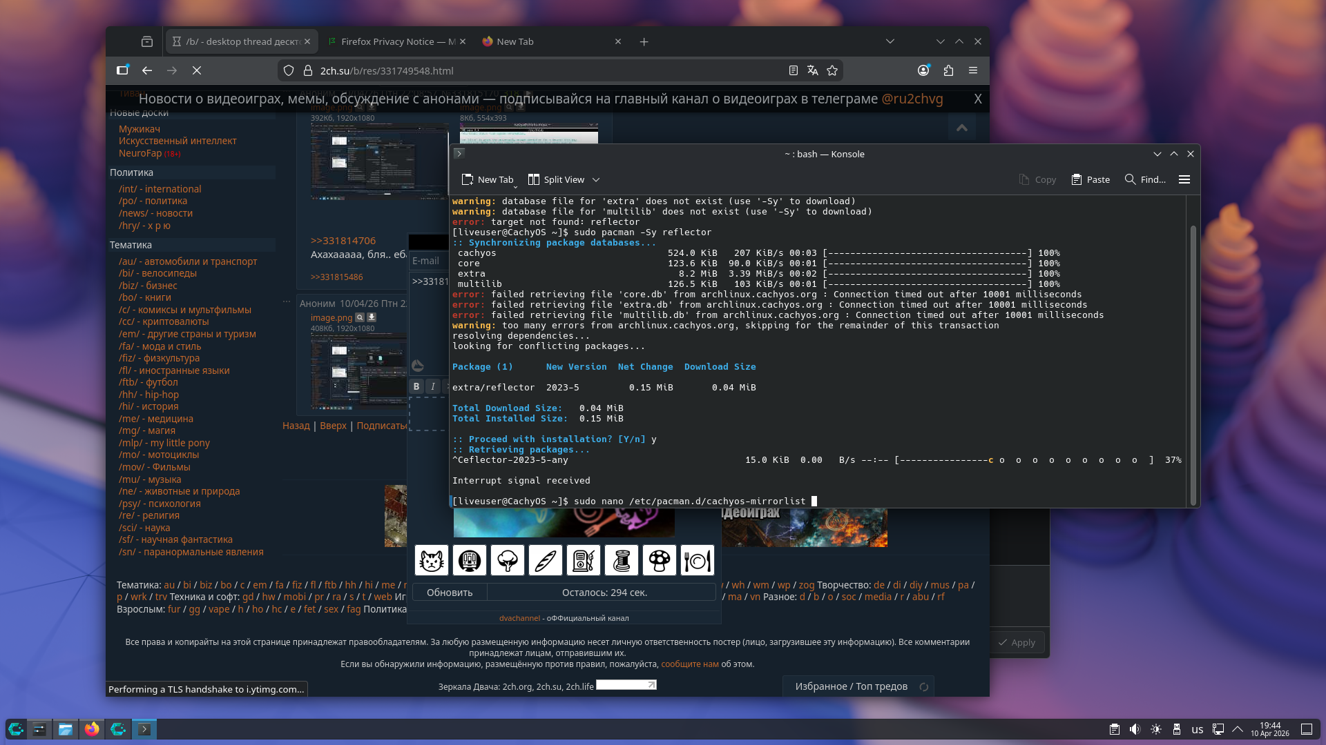 Заебато разъебал, не смотря на то что выбрал зеркала великой Руси хуета все равно ничего не хочет скачивать. Это короче все что нужно знать о члинупсе.