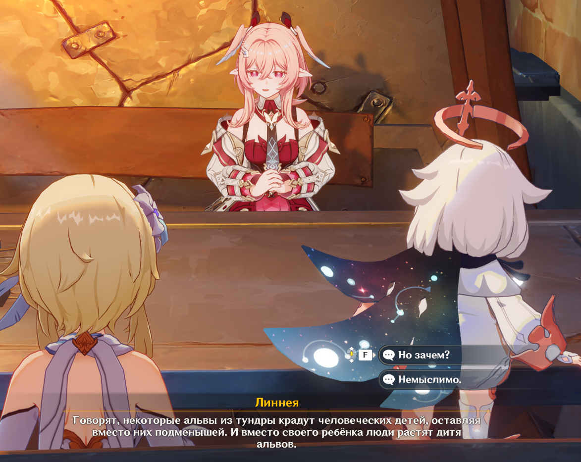 >>6729871 Меня больше всего в этой истории вот эта сцена поразила. Паймон спрашивает после рассказа Линнеи про альвов, а рассказала ли она своим родителям об этом. Я сначала задумался, а потом покрутил у виска. Паймон, ты что, глупая? Ей же даже рассказывать не нужно, у неё на голове всё написано... Или что, она думает, что два человеческих родителя, увидев у ребёнка крылья на голове, острые уши и кристаллы по всему телу, не поймут, что это не их дитя?.. Ну ладно, с мамой может и не всё так просто быть, но отец то явно усомниться, ахуеет и начнёт задавать вопросы ещё до того, как Линнея бы говорить научилась.